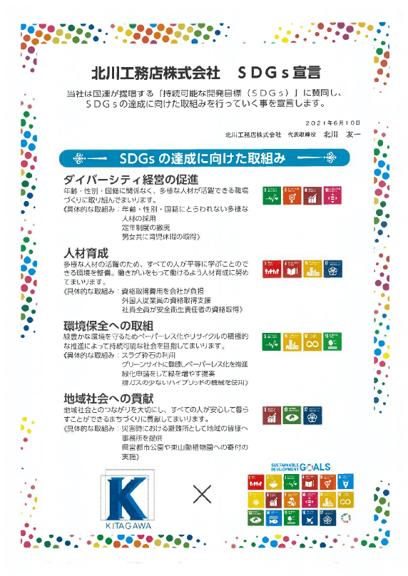 私たち北川工務店は、単なる協力会社としてでなく一人一人の職人や作業員が社を代表して、常に責任を持ち業務にあたっております。